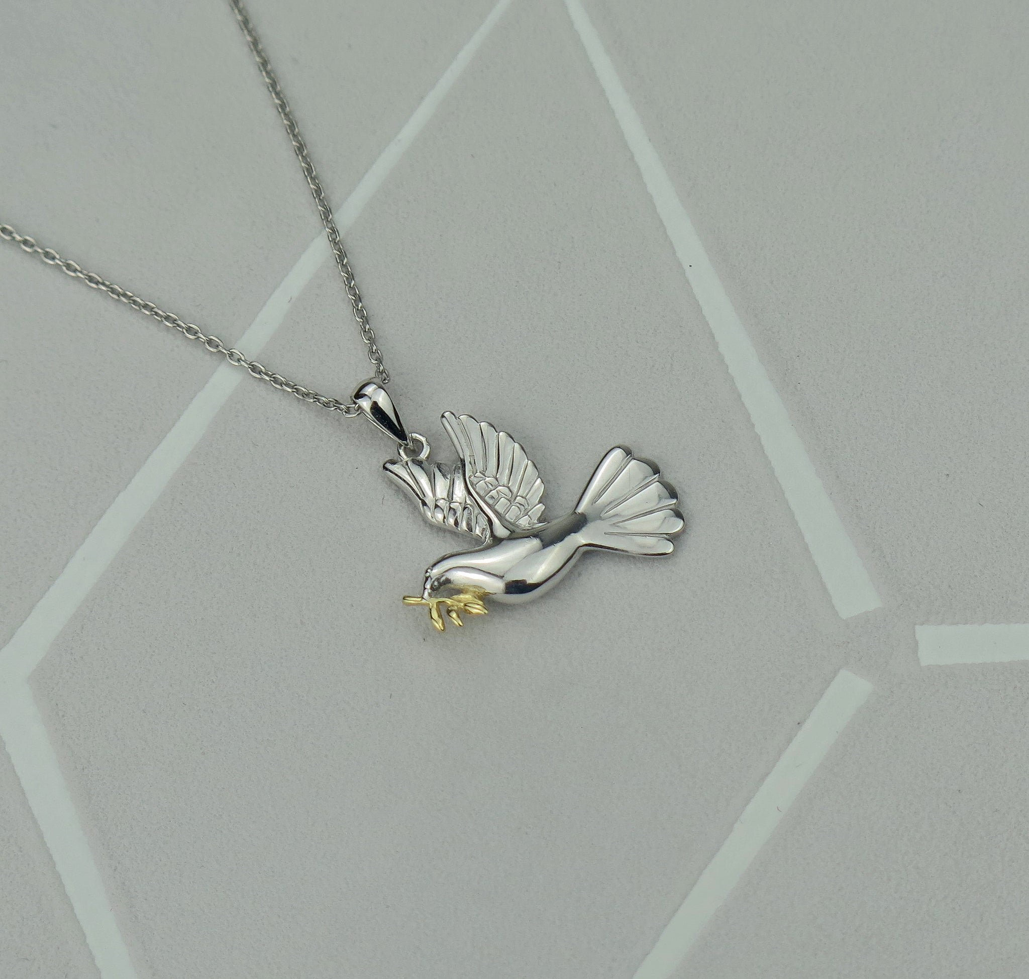 - This stunning, high quality pendant is made from solid 925 sterling silver made into the shape of a dove of peace with 24k gold plating.