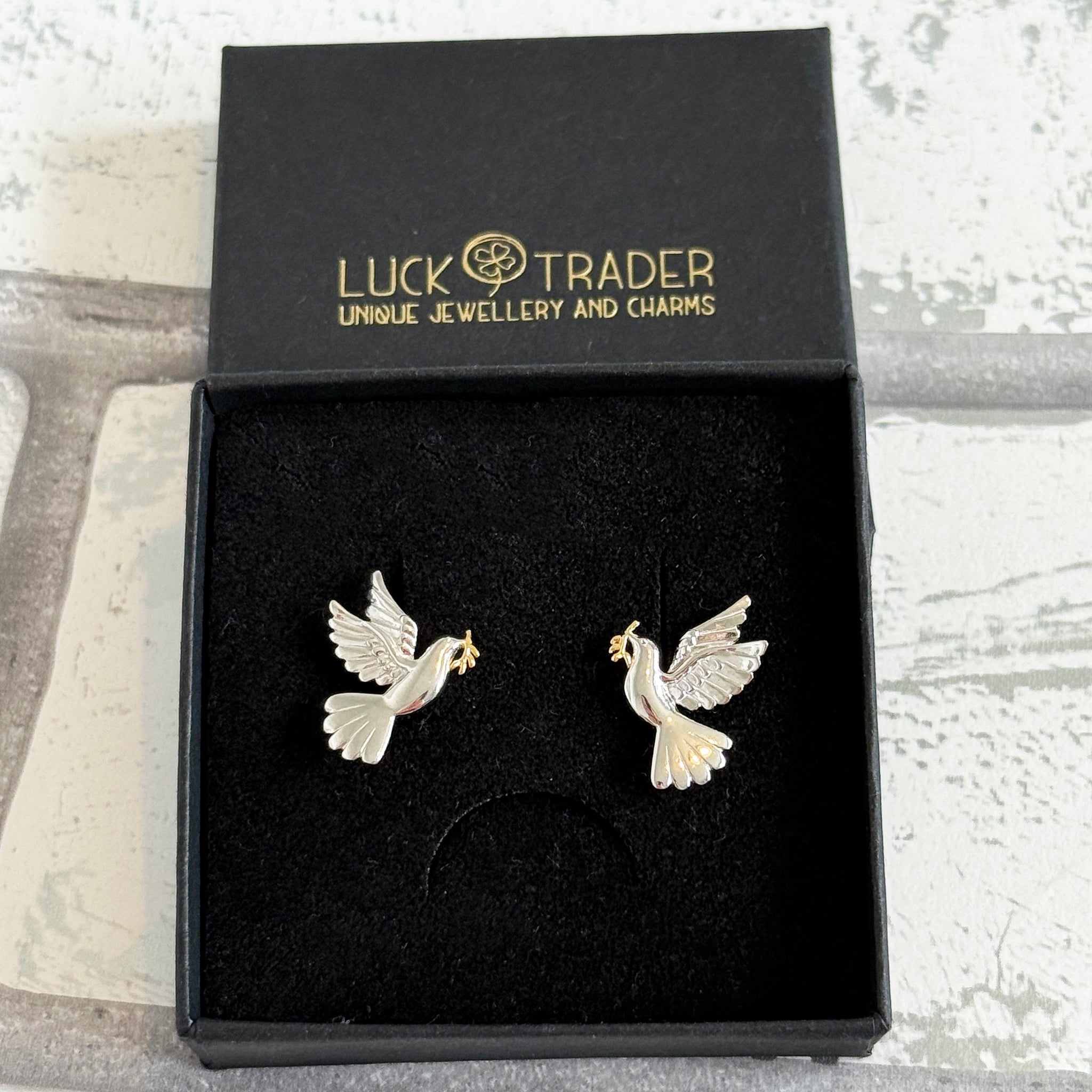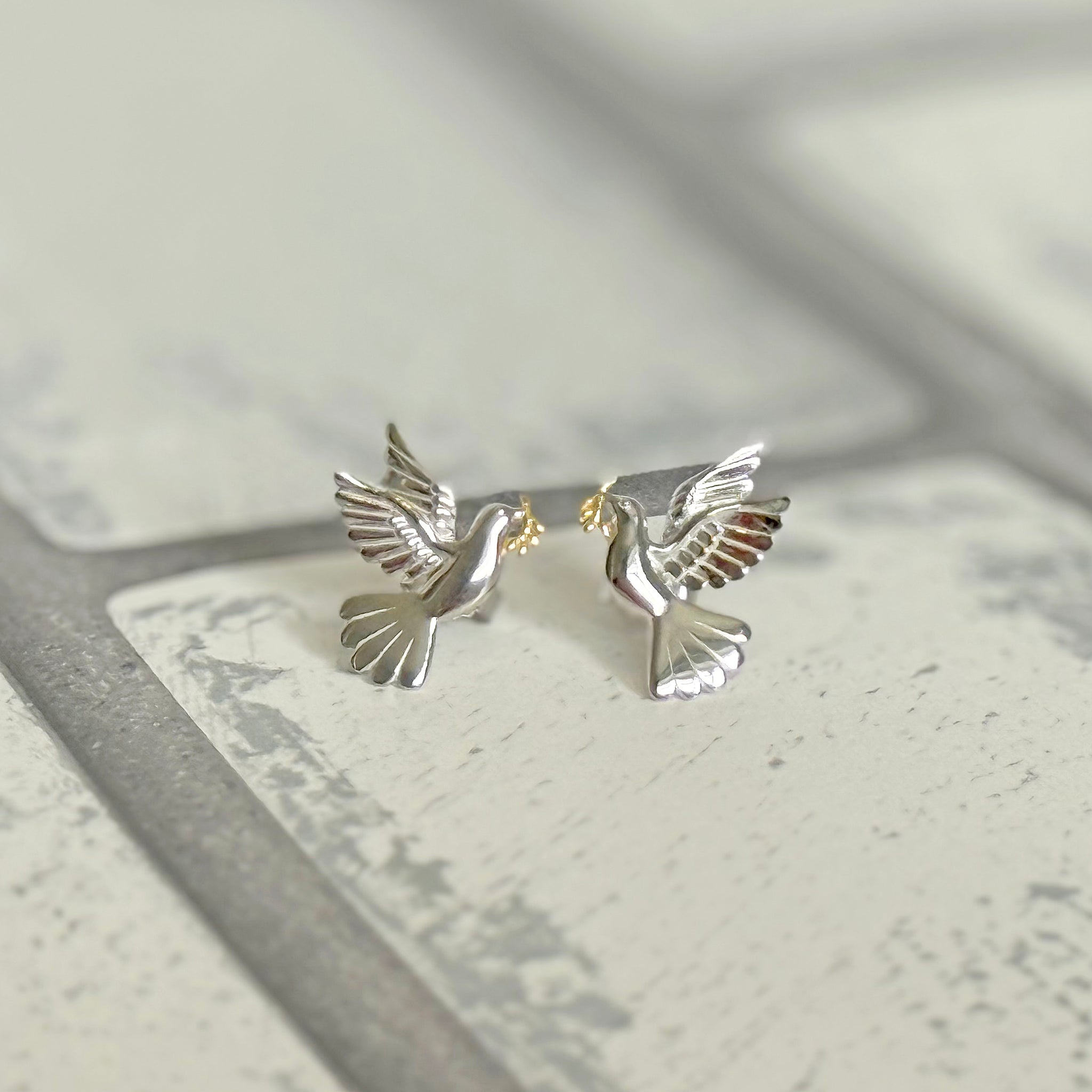 These stunning, high quality earrings are made from solid 925 sterling silver made into the shape of a dove of peace with 24k gold plating.