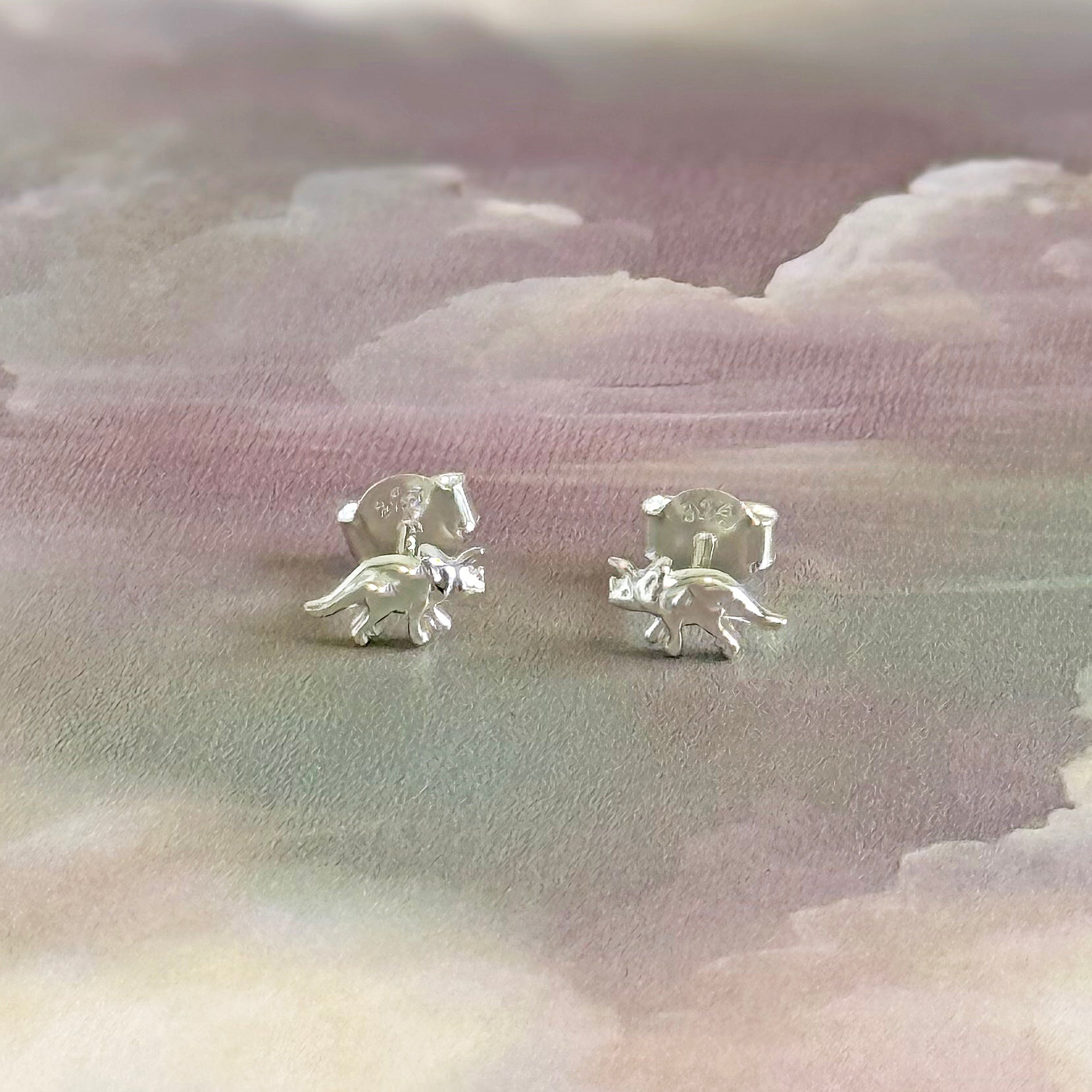 Sterling Silver Triceratops Dinosaur Stud Earrings