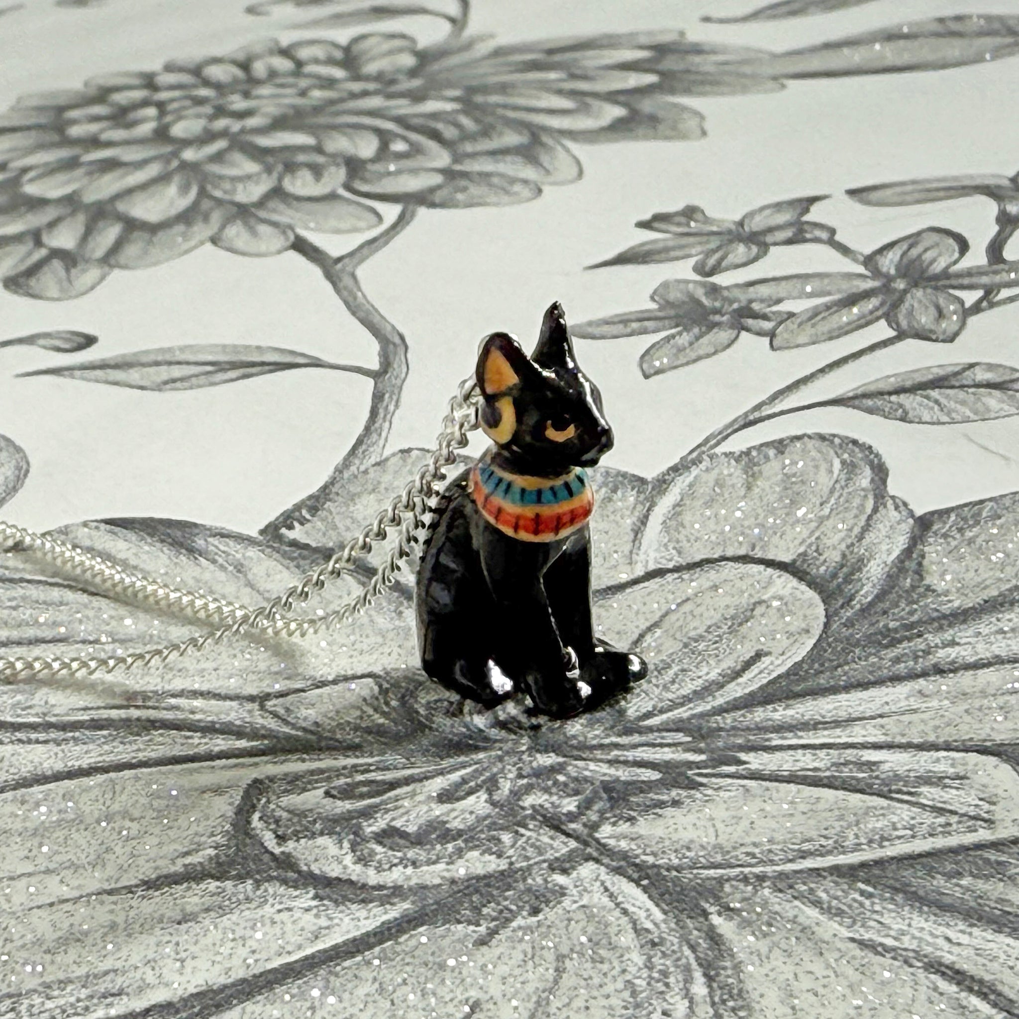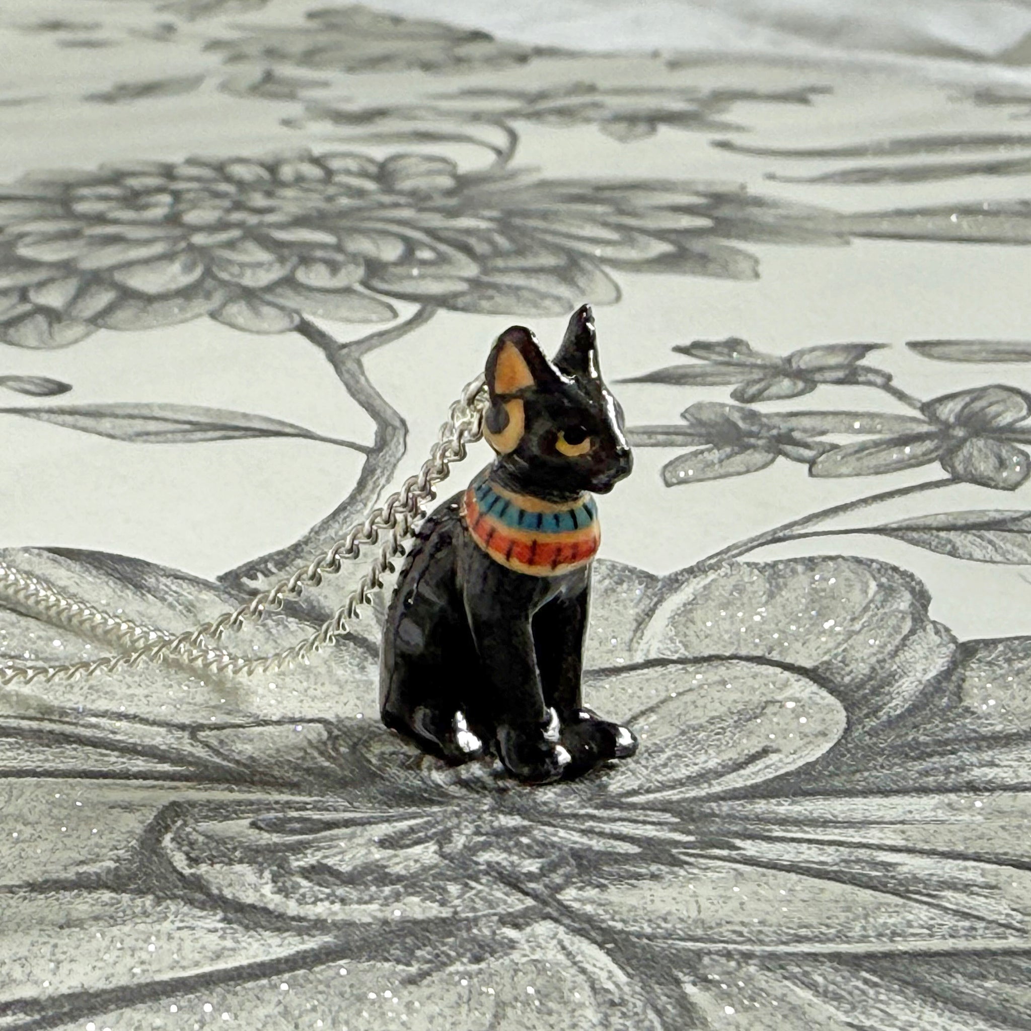 This stunning cat pendant is made from porcelain and is hand painted, then coated in a ceramic glaze.